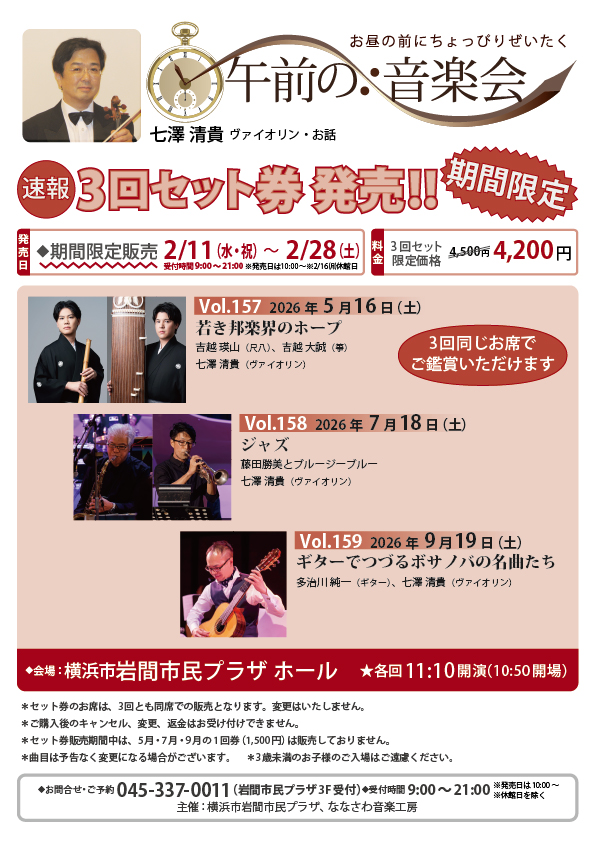 2026年3月14日(土) 11時10分開演 / 10時50分開場