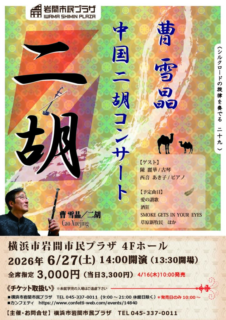シルクロードの旋律を奏でる29 曹雪晶 中国二胡コンサート