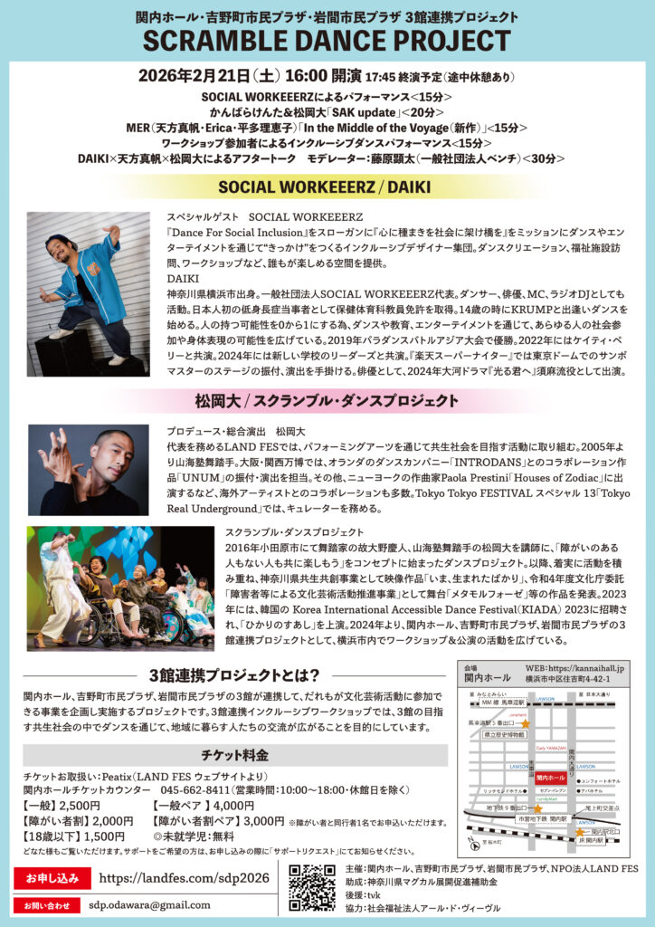 2026年2月21日(土) インクルーシブダンス公演 会場:関内ホール 小ホール 開演:16:00 (出演者の集合時間は12時予定)